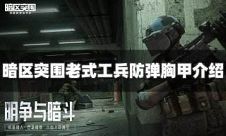 暗区突围老式工兵防弹胸甲1级防弹,耐久度25,人机工效-3,移动速度-3,所占格子3*4,防护部位胸部、上腹部、下腹部,通过局内获取。