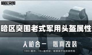 1、老式军用头盔属性:耐久度20、材质是装甲钢、重量2.6千克、占用格子2*2、防护部位为头顶、防弹等级为2级、听力影响无。