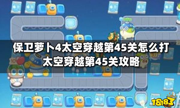 保卫萝卜4太空穿越第45关通关方法第一步在怪物出生点处建造毒针塔,兔迪生赠送的瓶子炮用来清理道具,第二步根据兔迪生赠送的道具进行火力攻击,第三步利用闲着的炮塔进行清理道具。