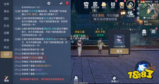 开服第一件事就是完成主线任务。新手任务结束后,继续跟随指引做主线任务,就能获取入港许可证、学习建造船只、选择职业、学习贸易等一系列内容。主线任务全程有寻路指引,非常简单。