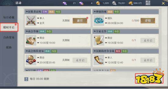 我们可以在限时开启中查看当天限时活动,熟悉活动时间后,即可合理安排时间参加活动。