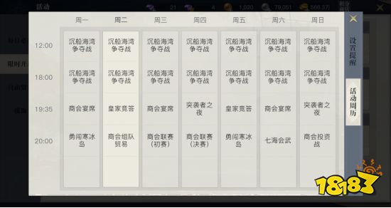 黎明之海一周限时活动课程表
