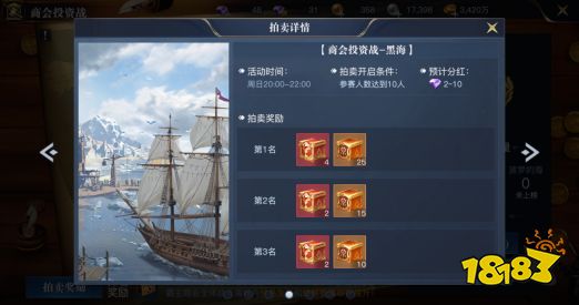 最后根据商会排名系统给予个人奖励以及商会拍卖奖励,拍卖所获钻石会与商会每个成员平分,没有卖出的物品则由系统回收到世界拍卖,并奖励商会成员等额绑钻。