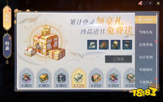 新手豪礼是最简单的获取地中海藏宝图的途径之一。我们每次新建游戏角色都可以获得一份新手豪礼,能够连续领取十四天的丰富资源。其中第4、第8、第11天的礼包内均包含两张地中海藏宝图,非常推荐大家每日领取。