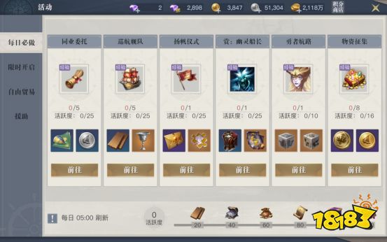 除了参加游戏活动之外,积累活跃度也是一种快速获得地中海藏宝图的办法。我们每日参加活动并累计获得80活跃度后,就可以领取一张地中海藏宝图。80活跃度仅需完成3-4个日常活动后便可获得,我们可以在闲暇时间完成并领取。