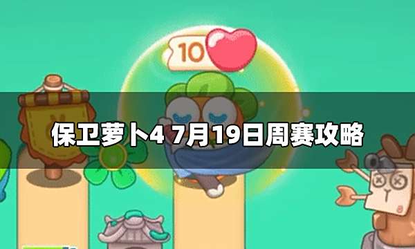 保卫萝卜4周赛7.19通关攻略是第一步开局放置两个火瓶子和一个箭塔并且升级,锁定下面钱袋,第二步打完钱袋后增加箭塔并升到二级,继续清除上方钱袋,一边清理怪物一边清理左上方牌楼,第三步清理右下方的障碍物,最后补充更多箭塔和火瓶子,在入口增加毒针塔。