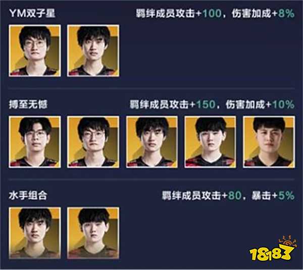 共能触发三个羁绊,能给JackeyLove增加230攻击,5%暴击和10%伤害。