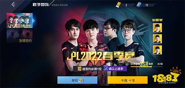 2、在游戏的主页面会有一个签约的板块,这就是这个游戏的抽卡界面,在这里玩家可以通过消耗金色签约券或者友情点,随机通过抽取卡池的方法获取LPL数据库中的选手。