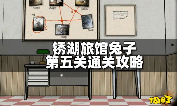 锈湖旅馆兔子完成第五关首先用钥匙开柜锁,查看兔子先生,给他魔术帽,他会摘下来,查看魔术帽里面变出四朵花,然后旁边的相框上有提示,按提示摆放花的顺序,摆好后花会伸回帽子里,点击兔头他会在身体和帽子里变来变去。