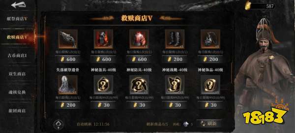 3、累积获得的献祭石、救赎石后可寻找商人亚伯罕,进入【黑市】兑换神秘装备。