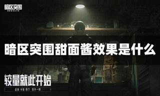 暗区突围甜面酱效果是食用后水量减100并且给自身的能量加100,启用时长是13.4秒,甜面酱获取方法是在对局中一些衣服里面搜索获得,也可以在市场上购买获得,推荐在有饮品的情况下使用它。