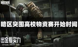 暗区突围高校物资赛开始时间是9月23日,9月6日开始通过官网招募,入驻高校联盟的先锋,与同学共闯暗区,还能通过比拼每日收集物资总值,在小队排行榜中榜上有名,赢PS5、Switch等实物大奖。