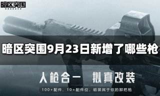 暗区突围9月23日新增枪有:栓动步枪M24、霰弹枪SPR310、卡宾枪SVTU、卡宾枪M16、突击步枪AEK、突击步枪ACE31、突击步枪AN94、手枪F57,F57是一把使用P90同款5.7*28毫米子弹的强力手枪,佩戴5级穿透子弹后威力不俗。