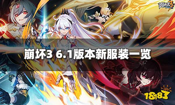 崩坏三6.1版本新服装有适用于天元骑英的尼伯龙根梦歌,适用于黄金璀璨之歌的水色流韵,适用于戒律深罪之槛的谬惑深蓝,适用于无限噬界之蛇的炽热砂砾。