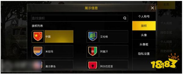 3、在进入的【展示信息】页面中可以看到有【旗帜】更改功能,将自己的旗帜更改成五星红旗中国即可!