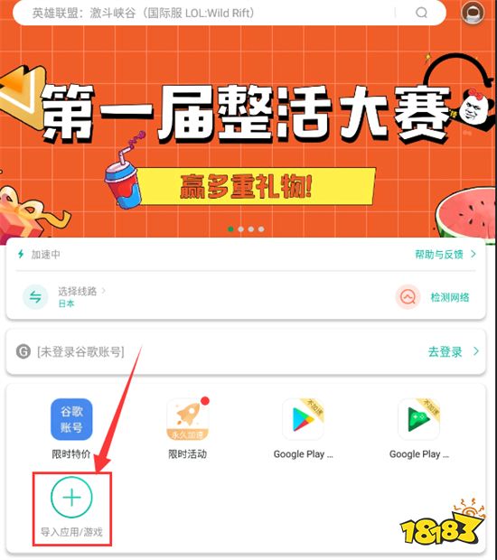 3、等待安装完毕后,点击下方导入按钮,导入你想要加速的游戏,这边以金铲铲为例;