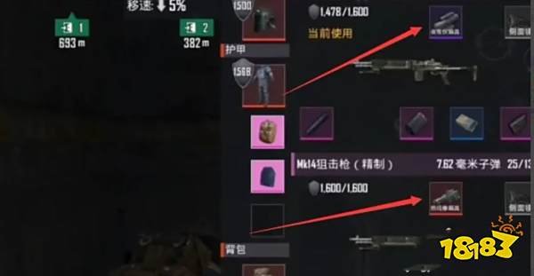 2、给两把枪分别装备夜视仪器和热成像仪器;