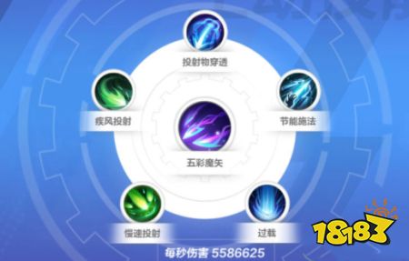 五彩魔矢是五彩流打法的核心技能,该技能搭配上装备以及天赋的加成可以打出每秒5586625的伤害。
