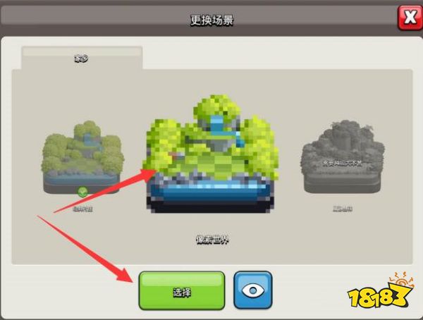 2、接着在更换场景功能窗口中,左右滑动切换上一下/下一个场景,比如这里要更换的是像素世界场景,切换到该场景后,点击下方选择即可切换到该场景。