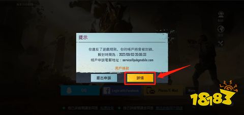 Pubg国际服手游查询被封号原因流程:首先使用被封禁的帐号进行登录,点击提示框的右下角的按钮,跳转至封号原因的界面,您可以在此界面中查看到您封号记录的详情。