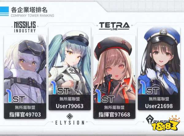 1、共有「米西里斯」、「极乐净土」、「泰特拉」、「朝圣者」4个企业的尼姬成长排名。