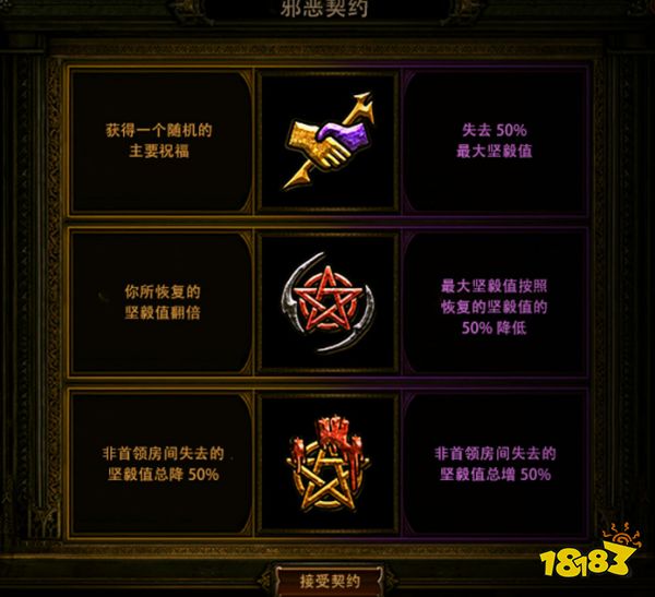 掌控着禁域的恶毒力量偶尔会向你提出遭诅契约。契约能为你提供强大的效果,而代价也极为危险。虽然契约极具诱惑力,但你也必须慎重选择。你的抉择可能标志着禁域之旅就此告终,也能成为成功的转折点。