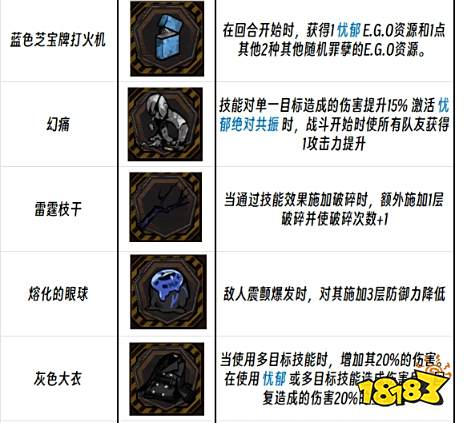 边狱公司镜像地牢E.G.O饰品有幻痛、雷霆枝干、最低星等,本篇为第三篇,给大家带来饰品图标一览和属性介绍,佩戴相应的饰品可以大大提升角色的能力,大家可酌情挑选佩戴。