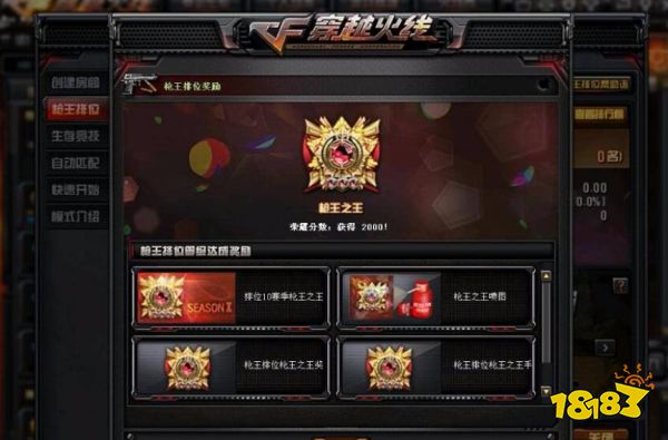 cf穿越火线荣耀枪王首先要排位分数达到4000分升枪王5段位,然后根据自己所处的区服排位分数达到前100名,才能获得荣耀枪王称号。