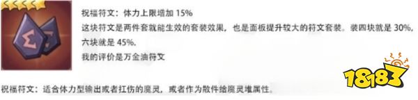 魔灵召唤克罗尼柯战记祝福符文能增加体力上限,两件套即可产生套装效果:体力上限增加15%,适合体力型输出或者抗伤的魔灵。