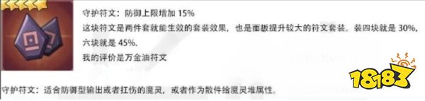魔灵召唤克罗尼柯战记守护符文能增加防御上限,两件套即可产生套装效果:防御上限增加15%,适合防御型输出或者抗伤的魔灵。