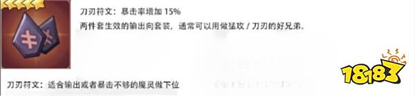 魔灵召唤克罗尼柯战记刀刃符文能增加暴击率,两件套就能产生套装效果:暴击率增加15%,适合输出型或者暴击不够的魔灵,适合与猛攻符文一起做搭配。