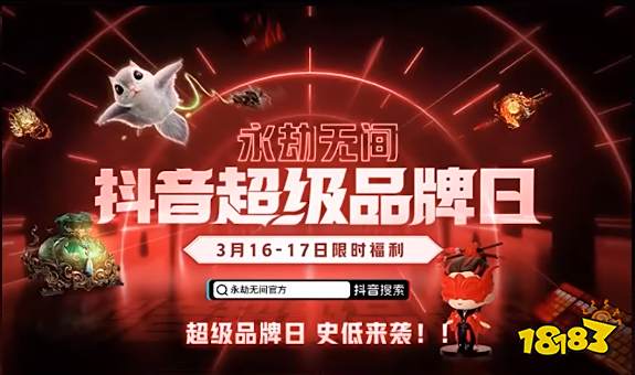 永劫无间抖音折扣活动有游戏本体三折29元,飞索飞鼠道具七折147元,新手自选时装和武器礼包六折99元,龙之道系列皮肤半价59.9元等等,持续时间是3月16日10:00至3月17日24:00,详情请见下文。