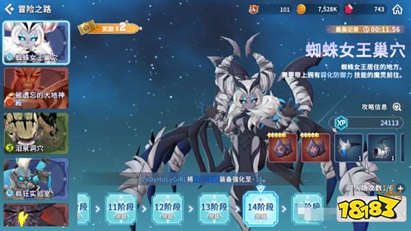 魔灵召唤克罗尼柯战记符文本刷蜘蛛女王巢穴和泪泉洞穴比较好,可以挂机刷14阶段,队伍配置带风小猫、光鸟、风小仙。