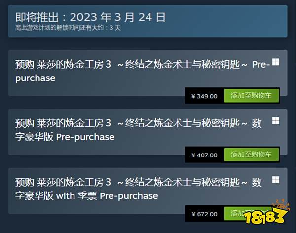 莱莎3豪华版包含游戏本体、服装组合“回归夏日”和“另类穿搭”、宝石包和钥匙包,其中季票购入特典还包括“GUST联名合作”服装组合。