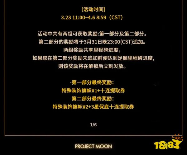 边狱公司新晋经理的出勤奖励有特殊装饰旗帜、十连提取券和3星保底十连提取券,第一部分获得一个特殊装饰旗帜和十连提取券,第二部分获取两个特殊装饰旗帜和3星保底十连提取券。