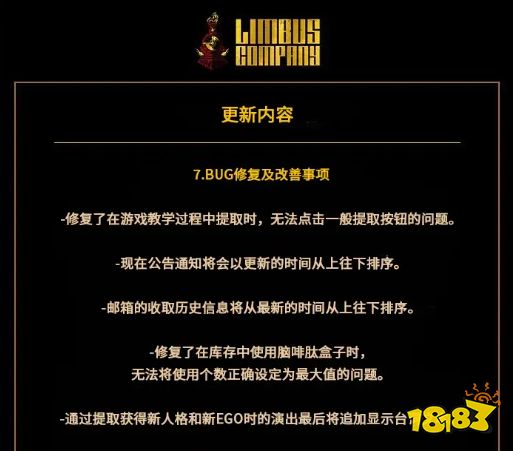 本篇收纳了边狱公司3.23一些零碎不重要的更新内容,方便有需求的玩家查看,有关卡池更新和活动内容介绍,请看相关合集贴。
