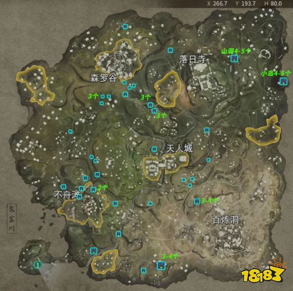永劫无间萤火虫刷新点出现在森罗谷周围、不舟滩右侧方位、百炼洞二号矿场左上方、天人城的周围,还有落日寺右侧的山洞内和地图最右侧的半岛上,下面给大家带来萤火虫出现点图文详细标注。