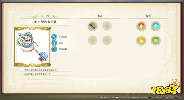 莱莎的炼金工房3钥匙有四种形状,分别是钻石、羽毛、钟表和星球,属性为基本四大属性风雷水火。常见和罕见只有一种元素属性,稀有有两种属性,超级稀有有四种属性。