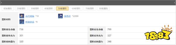 3、40级50级晋阶需要用到古代转轴、铁狼碎齿和信用点