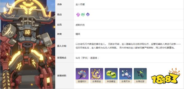 崩坏星穹铁道金人司阍的打法是用风系、雷系、量子系的角色组队对抗,他在仙舟[罗浮]的迴星港,可以掉落换境树叶、永寿荣枝等,技能招式有缚束、奉辞罚罪、儆惧、戒退。