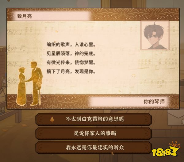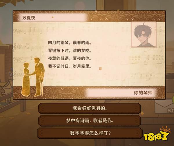 火山的女儿克雷格的信第一封回梦中有诗篇,歌者是你,第二封回我永远是你最忠实的听众,这两个选项都能加4点好感值。