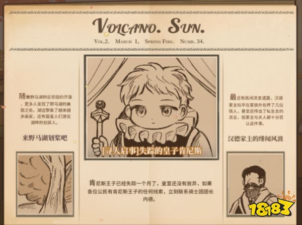 火山的女儿报纸是两个月分发一次,会有全新的内容,中间的主栏刊登与游戏主线有关的事件和线索,两边的副刊有小道娱乐新闻也有众筹时的投稿内容,本篇为大家收集了全部的报纸信息,有利于考察党收藏。