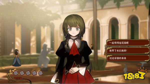 能认识你真好、一起慢慢逛花园吧、与一旁的贵族小姐社交、欣赏一旁的贵族美人、比赛唱歌怎么样?想要去旅行呢…想一直在这里待着…
