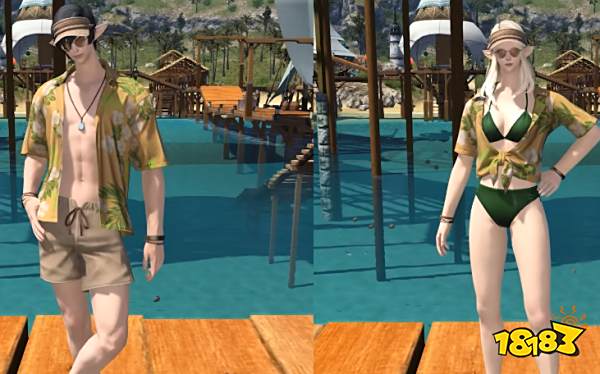 ff14海岛假日泳装套的获取方式是参与无人岛活动,拿青船币进行兑换获取,泳装分为两套,有腰前系带和不系带的,三角裤和平角裤,男女都可以穿。