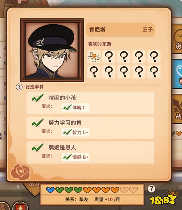 要求:情感B+,关系达到挚友