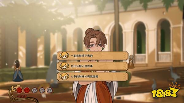 火山的女儿玛丽邀约问答要选人多的时候才有氛围呢、人在不同阶段总会有不同的想法、工作真是辛苦,四个场所都有喜欢的话题,还能赠送礼物增加气氛值。