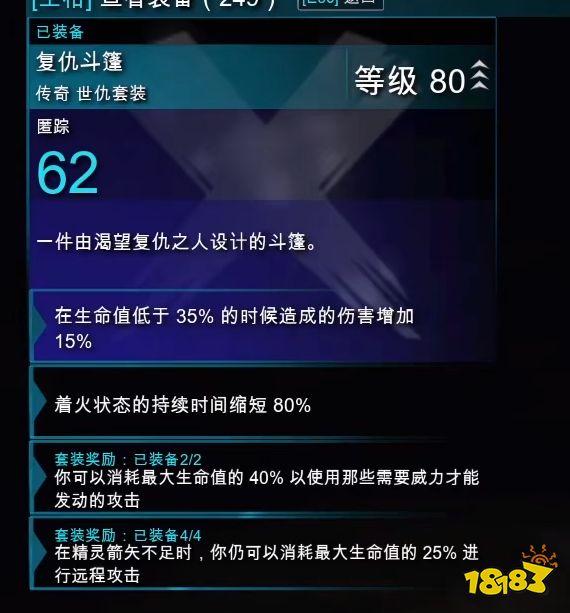 中土世界战争之影最强套装是世仇套装,也称复仇套装,它是一套传奇装备,包含复仇之剑、复仇匕首、复仇之弓、复仇护甲、复仇斗篷和复仇符文。
