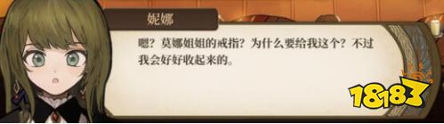 火山的女儿莫娜的戒指可以送给武器店老板杰曼,是他喜欢的东西,也可以送给莫娜、妮娜和格温妮丝,能够触发特殊对话。