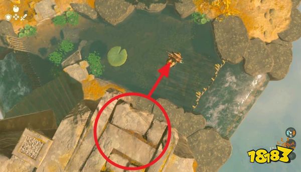 从旁边的台子跳下东南方的水池。