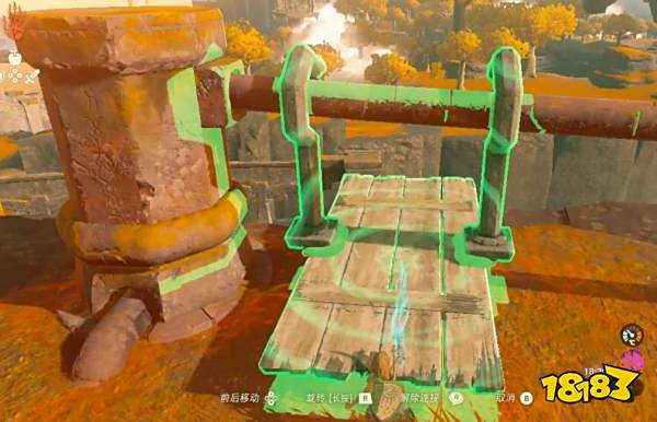 通过一个断掉的桥梁后,北边有一个空岛,利用下图的台子可以到对面,这个台子是悬空的,可以放在任何位置。对面有一个宝箱,打开可以获得【琥珀】。